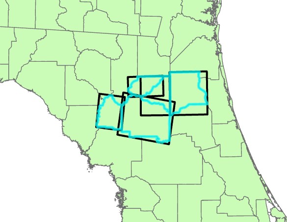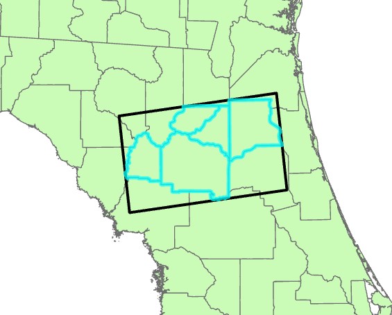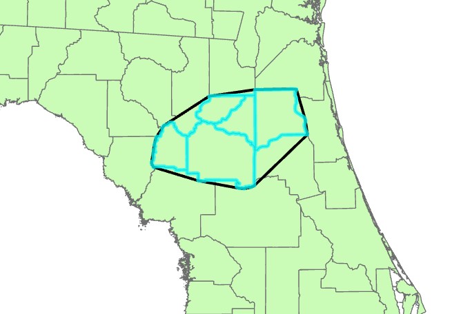 The following shows all selected counties grouped together to create a single bounding rectangle: