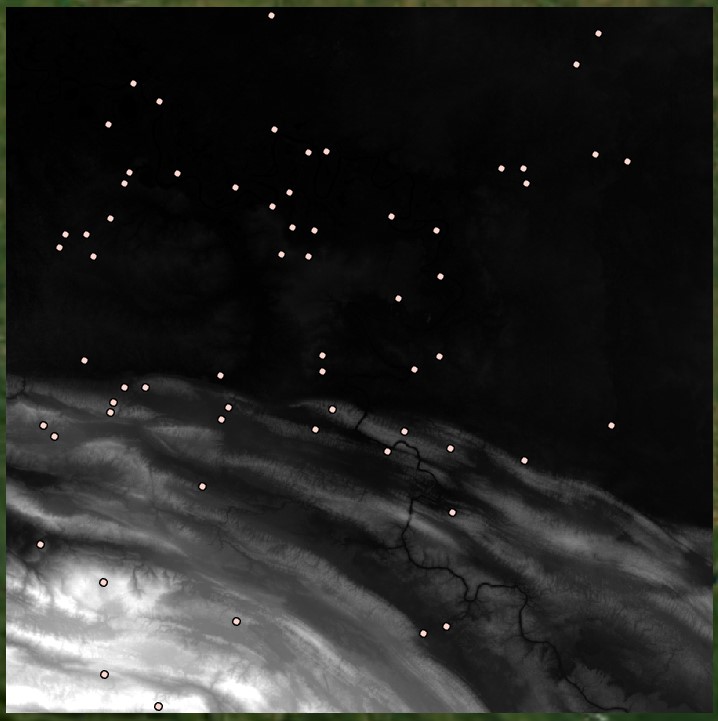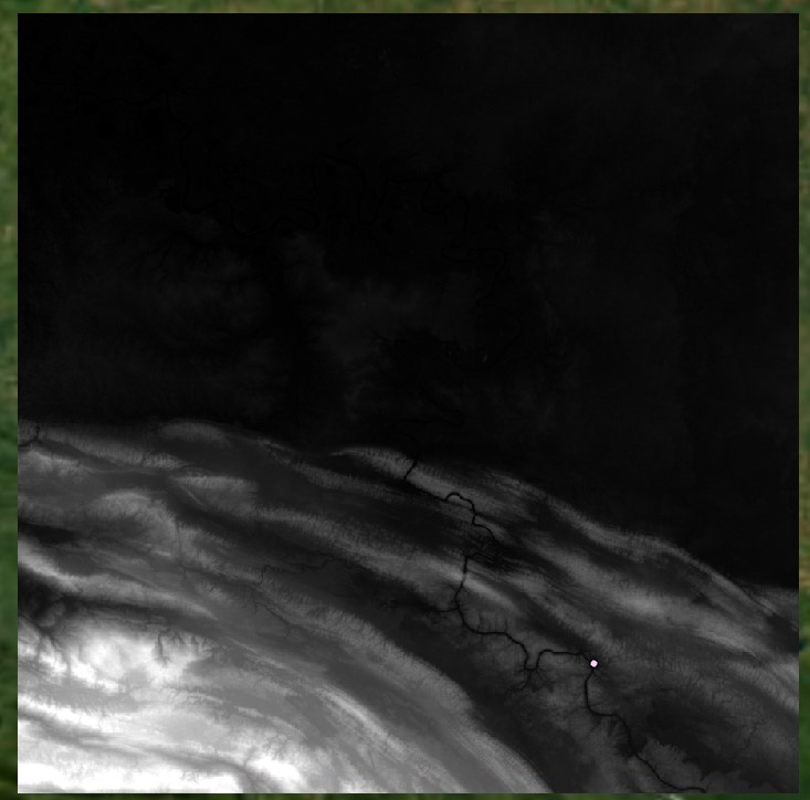 Finally, we input the Flow Direction raster into Flow Accumulation, but we also specify an Input weight raster. This parameter is generally left blank when running the hydrological tools, but by inputting a raster that represents specific locations, the tool will run a flow or path model using those cell locations as the source. To create such a raster, use the Feature to Raster tool to convert another set of origin points to raster.