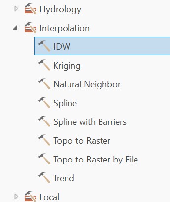 The Natural Neighbor tool is the simplest approach to interpolation. This tool should generally be reserved only for modelling flat areas with minimal topographic variation.