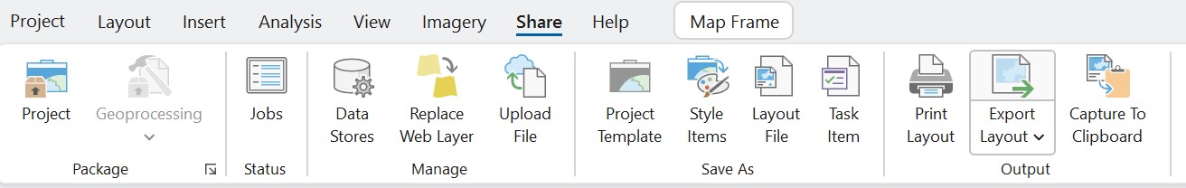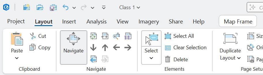 To create a Layout in ArcGIS Pro, you must already have at least one Map Frame in your project. Go to Insert -> New Layout, and select the size and orientation of your layout. You will see a blank page. To add a map, go to Insert -> Map Frame and click either Default Extent or Map. Next, click and drag a rectangle over the blank layout. You can then resize the map to take up a portion of the layout or the whole page.