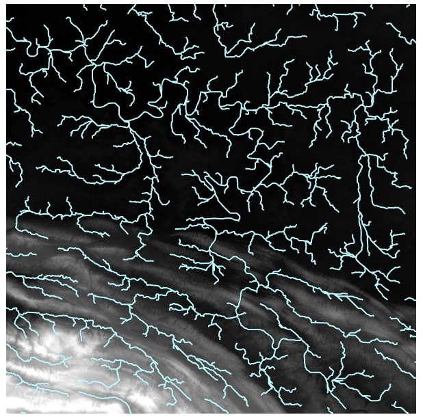 We could just draw a line connecting this portion of the stream network; however, any other analyses we run will produce undesirable results (e.g. stream order, basin, watershed). We therefore need to alter the flow direction raster.