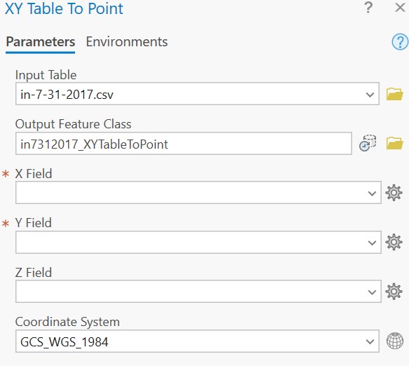This tool takes a feature class as an input, seemingly with no parameters. However, you must also specify the Output Coordinate System under Environments. Once the tool is run, two new columns will be added to the attribute table, POINT_X and POINT_Y.