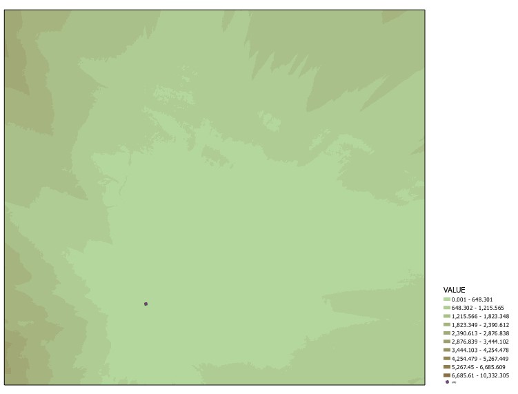 When multiple points are input to the Viewshed tool, the resulting raster assigns values to each cell representing the number of observer points that can view that cell: